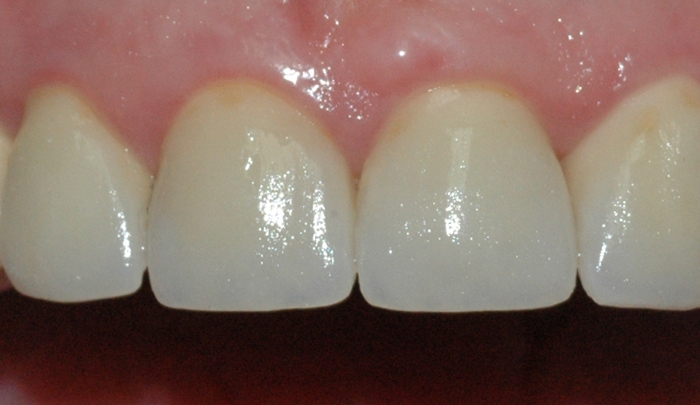 Bildet viser resultatet etter at fyllingene er erstattet med keramiske kroner.