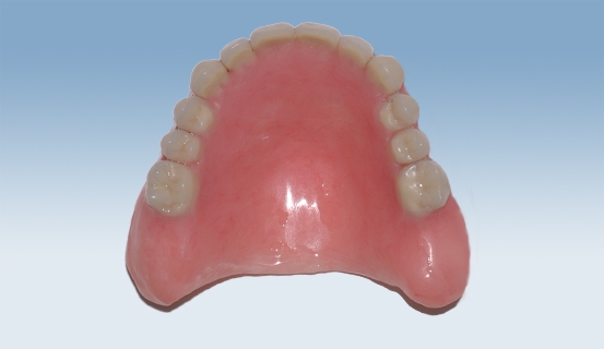 for tenner i plast eller porselen. Helprotesen lages av en tanntekniker